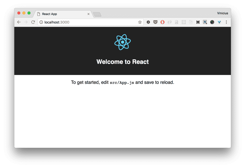 Já é possível acessar a url http://localhost:3000/ no navegador e ver uma tela de boas vindas: