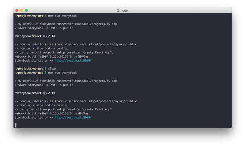 O Storybook possui um CLI para ser utilizado no terminal, que funciona de forma muito similar ao create-react-app. Os passos abaixo levam em consideração um ambiente com Node e NPM instalados, conforme já vimos no segundo post. Também é importante que você já possua um projeto com o ambiente configurado, conforme explicado também no segundo post.